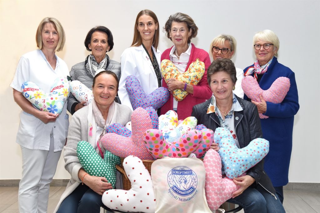 In Oberkärnten werden sie vom Krankenhaus Samonigg und der betreuenden Ärztin an die operierten Patientinnen übergeben. Die Herzkissen selbst wurden von den Clubmitgliedern im Bildungszentrum Litzelhof zugeschnitten, genäht und gefüllt. Mit dem waschbaren Füll-Vlies wurden wir von der Firma Goldeck Textil unterstützt.